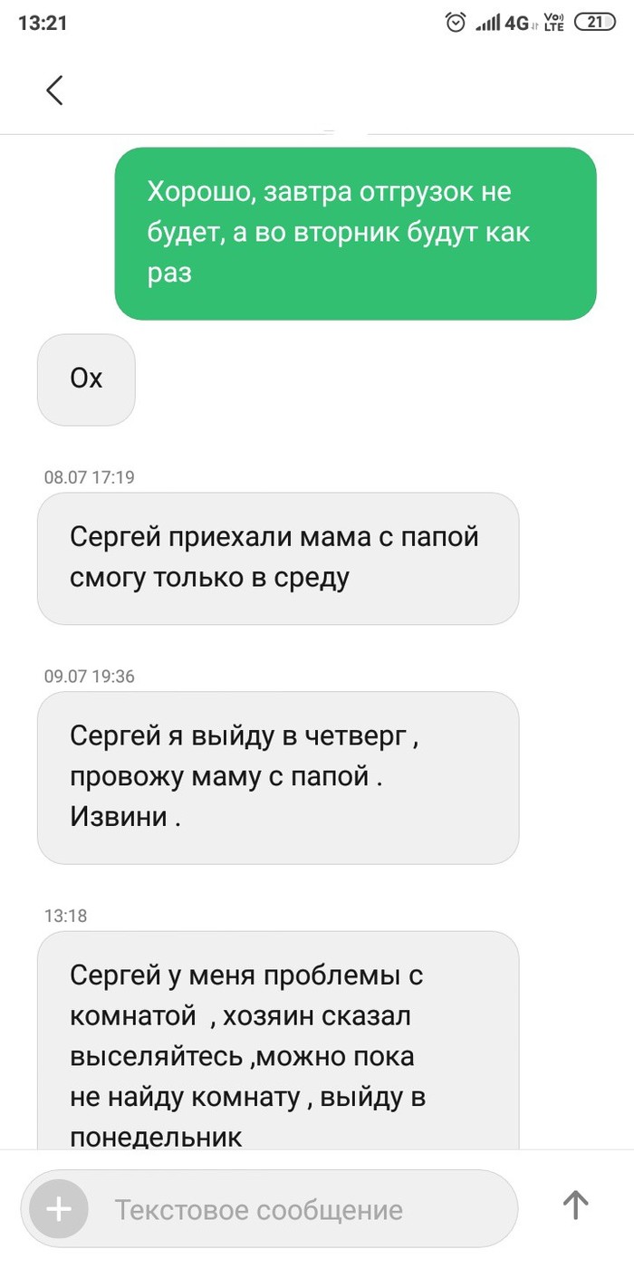 15 Golovozgop Как я грузчика на работе ждал. 6 лет назад Обратите внимание на даты сообщений. Человек отработал 2 дня. Показать полностью 2 [моё] Работа Склад Грузчики Длиннопост