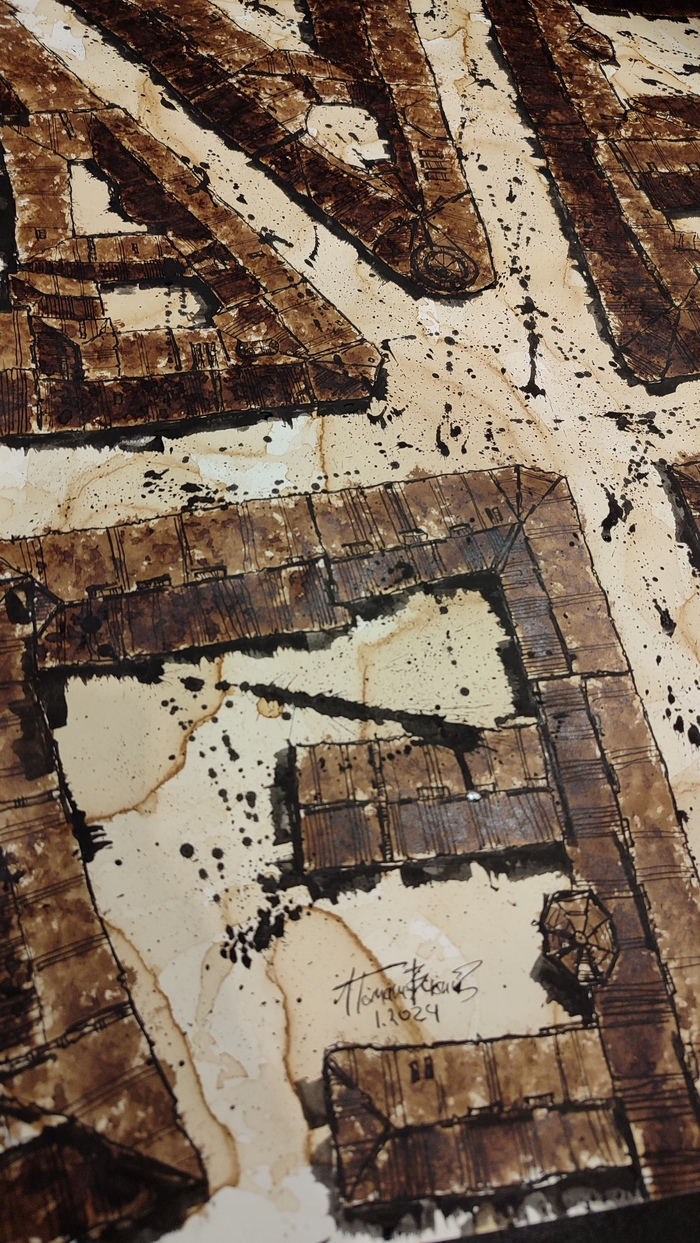 Размер картины А2, выполнена пером и тушью