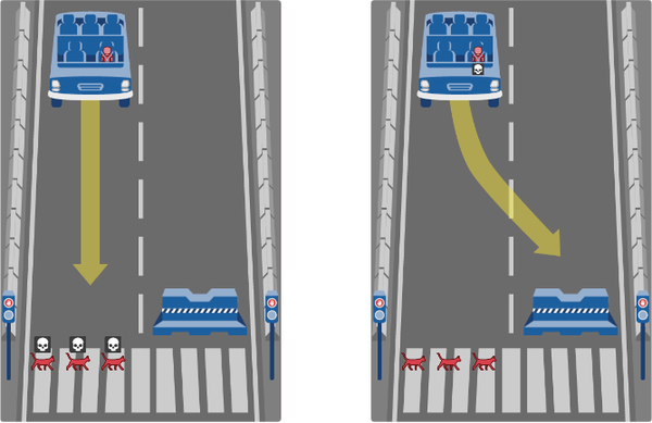 Въехать в бетонное ограждение или убить двух пешеходов?