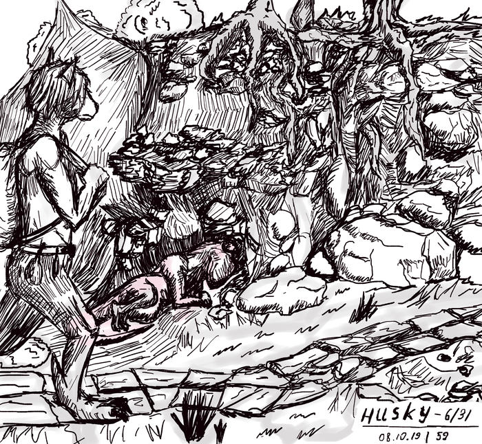 Все темы вольно перевел и интерпритировал я. Так как изначально основная идея инктобера была в том что бы вспомнить классические материалы (которых у меня нет) то все арты в этот период я рисую с помощью кисти (Перо) в програме Krita.