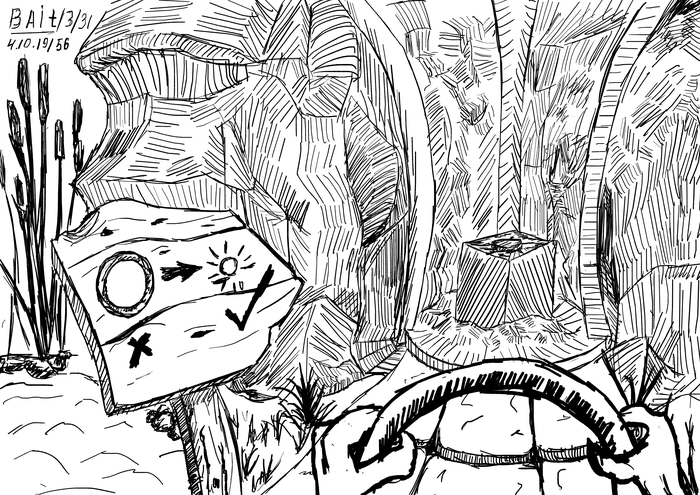 Однажды ему посчастливилось найти на болотах табличку ведущую к алтарю.