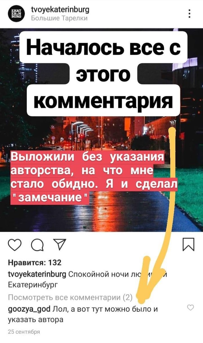 Предыстория: я фотограф (не профессионал, просто хобби). Мое фото выложил этот аккаунт. Но не отметил автора, на что я и указал.
