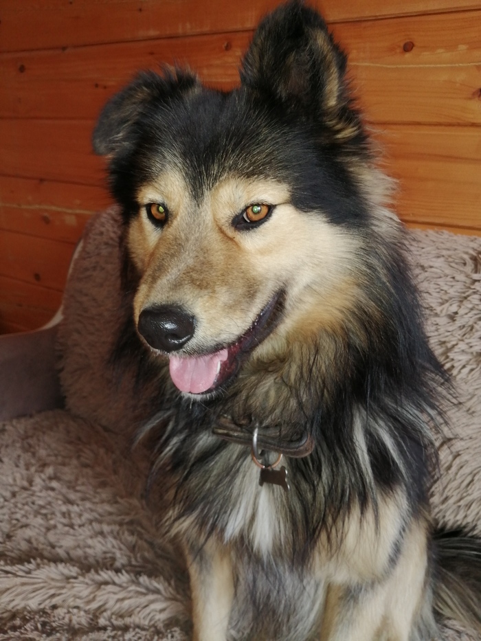 Дело было в октябре-ноябре 2018 года. Стал захаживать ко мне песель и утаскивать миску у моих собак. Тогда я стала ставить миску для него, чтобы он мог спокойно покушать. Дуся и Боря с ним играли, но он то уходил, то приходил. А когда закончили установку забора, он окончательно обосновался у нас и отказался уходить. Мы назвали его Пирожок.