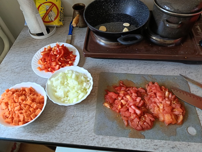 Вечная проблема, запихнуть в посуду всё что нарезал)