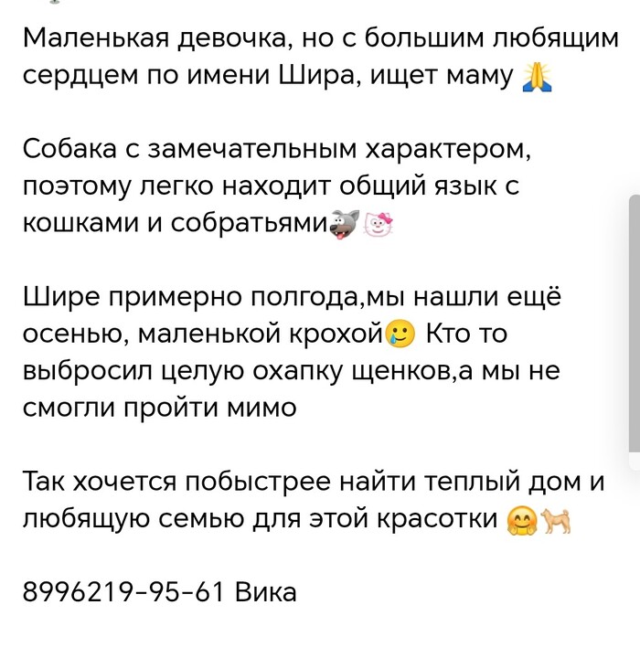 Может где-то Ширу ищет или ждет будущий хозяин, с которым она будет счастлива?