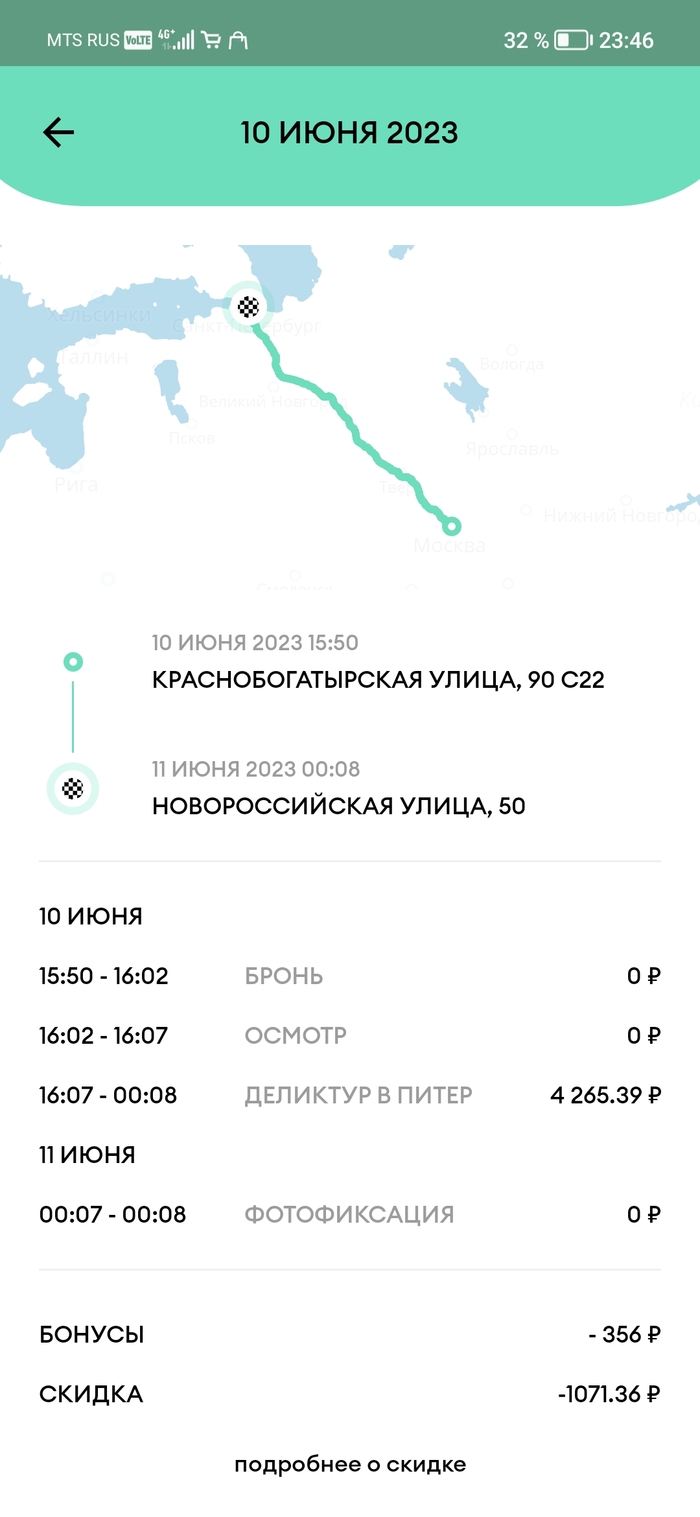 Доброго времени всем.Извиняюсь сразу за свою писанину но хочу поделиться опытом чтоб другие не наступали на мои грабли, вроде и поругать хочу и одновременно похвалить делимобиль. Приехали мы с женой и дочей в отпуск в Москву отдохнуть на неделю и неделю провести в Санкт-Петербурге. Думали как добраться до Питера и я увидел что есть в Делимобиле тариф деликтур и очень мне уж захотелось на машине прокатиться с Москвы до Питера, обратно решили на сапсане ехать.Погуляли мы по Москве неделю и настал день ехать в Питер. В часов 9 утра захожу в приложение ставлю фильтр деликтур показывает на карте 4 машины до одной ехать полчаса примерно до остальных в два раза дольше, специально беру машину в Яндекс Драйве и одновременно бронирую машину в Делимобиле чтоб она не ушла пока мы едем, думаю пусть бронь будет платная зато машина перед носом не уйдёт, доезжаем мы до места назначения и что вы думаете?. Ты машину видишь, нет а она есть! Короче с женой как дураки весь жилой комплекс обошли в поисках этого несчастного фольцвагена поло но на месте его небыло, время уже 11 час пока ходили, отменяю бронь, естественно уже платную 143.41 рублей накапало, думаю ладно щяс не до этого надо быстрее в Питер рвануть, другая самай ближайшая машина была еще дальше, решили ехать. Пришлось поменять машину с драйва на деликтур так как в тех дебрях на драйве машину нельзя было оставить, ехали около часа туда, еще дальше в пригород Москвы, уже начались пробки, в Делимобиле когда ты используешь машину не показывает фильтр деликтур, жене пришлось быстро регистрироваться в приложении чтобы забронировать машину, в итоге мы туда приехали а машины также нет, объехали весь район, нет её нигде, проклял всё на свете что решил поехать этим деликтуром, поехали в сторону Москвы на Ленинградский вокзал, билетов на сапсан и ласточку уже нет, приехали на вокзал время уже 14:00, нашли только на поезд в 19:00 который идёт 9ч до Питера. Я уже расстроен сижу думаю че делать, думаю наебалово какое-то с этим деликтуром, сдали багаж в камеру хранения, перпектива ночевать в поезде меня вообще удручала, пошли покушать в вареничную через дорогу, сидим кушаем и тут решил зайти еще раз глянуть на карту в Делимобиле, смотрю еще один поло рядом появился, время начало четвёртого, жене говорю поехали посмотрим стоит машина или нет, взяли такси рванули туда ну и естественно что? Машина благополучно стоит на парковке, взяли машину рванули до вокзала забрали чемоданы и поехали в Питер, до гостиницы добрались в начале первого ночи, ехали по платке, от Москвы до Твери стоит 1600 потом Тверь огибаешь по общей дороге и опять начинается платка уже до Питера около 480км вышло нам 2000, итого 3600 + 3200 машина и на платке еще пришлось за свои деньги дозаправиться на 1000 так как у делика нет там заправок ну и пусть лучше в баке будет бенз мало ли че в дороге произойдёт, в целом еслиб не эта нервотрёпка с утра и потраченные лишние деньги на поездки до машин которых нет было бы всё супер. По дороге в Питер попутно попалась еще одна поло делимобиля .Предупредить хотел о том что если машина не в черте города то скорее всего её там нет, почему так происходит я не знаю но будьте осторожны, пытался дозвониться в поддержку делимобиля но не вышло. Мой первый пост не судите строго.