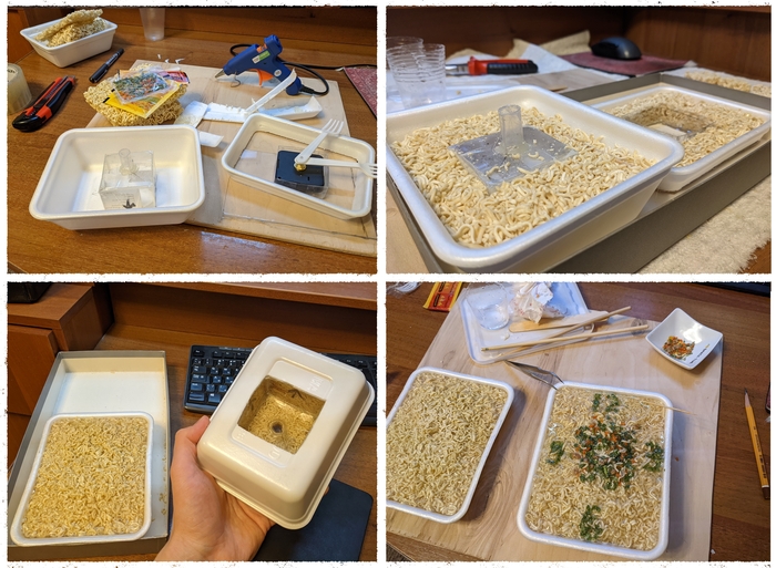 Самая муторная часть была когда я дербанил электролобзиком фанеру. Фанера трещала и крошилась. Запорол кучу материала. Благо кривые огрызки потом тоже пригодились. Ну хоть пальцы на месте. Вообще пожалел, что почти не делал фотографии в процессе. Решил что будет не шибко интересно, а в итоге интересно стало мне самому.