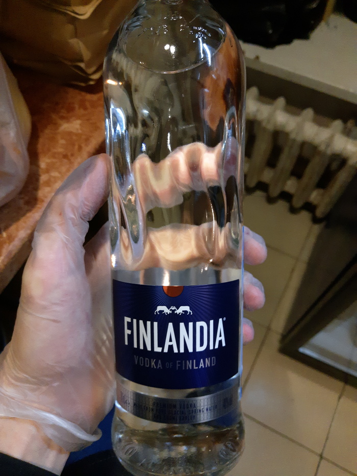 Так уж сложились обстоятельства, пришлось использовать эту не самую дешёвую водку. Ну да не суть, подойдёт любая. Выливаем 800 мл. этого нектара Сатаны и тщательно всё размешиваем.