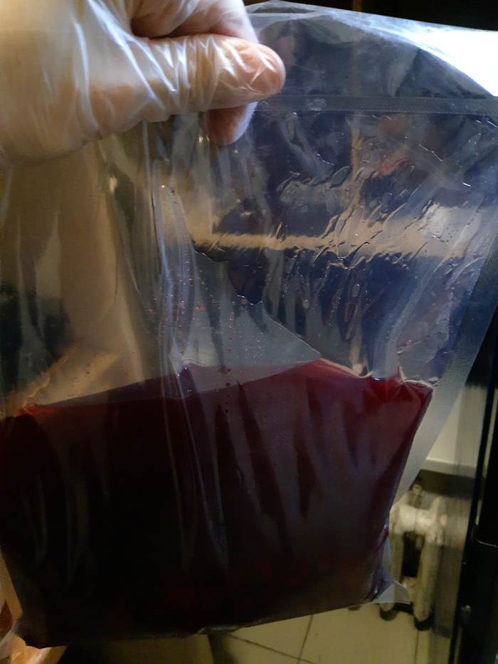 Герметизируем всё это дело и отправляем в пароконвектомат на два часа при шестидесяти градусах. Затем оставляем пакет в покое хотя бы на сутки, процеживаем, переливаем в банку и держим её закрытой, естественно.