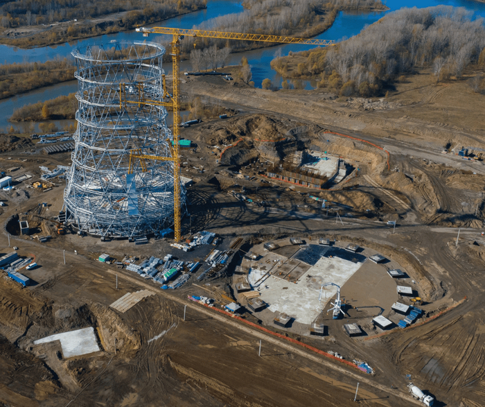 Этап обшивки градирни КДБ 3200 на Томь-Усинской ГРЭС