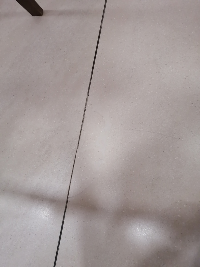 В этот раз на нас вышел не много не мало а целый музей. Честно я никогда не видел такого количества разбитой плитки, и в таком состоянии, вроде бы ремонт свежий но на полу следы будто бы от боевых действий. От удивления я сфотал самую сочную заделку эпоксидкой (реставрация от застройщика) разные фрагменты были в разных плоскостях. Разогретый газом клей начал отходить, я даже изрядно прогрел пару кусочков что бы попытаться их вытащить и выставить как положено. Но вопреки моим стараниям удалось лишь погнуть стальной зубной стек или зонд как больше нравиться и принялся заделывать вновь открытые миру щели между фрагментами. Заливка проходила в 4 этапа специальным филлером.