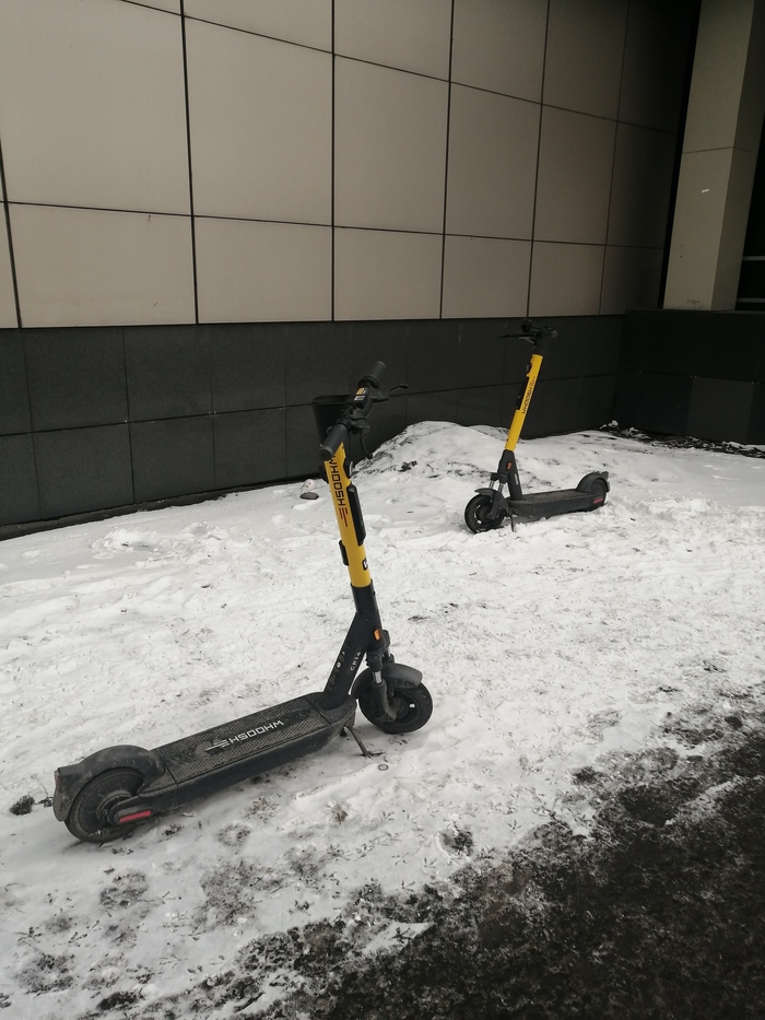 Пэ сэ когда пришел домой, началась метель и в окно увидел как двое слабоумно отважных мчались сквозь неё на одном самокате