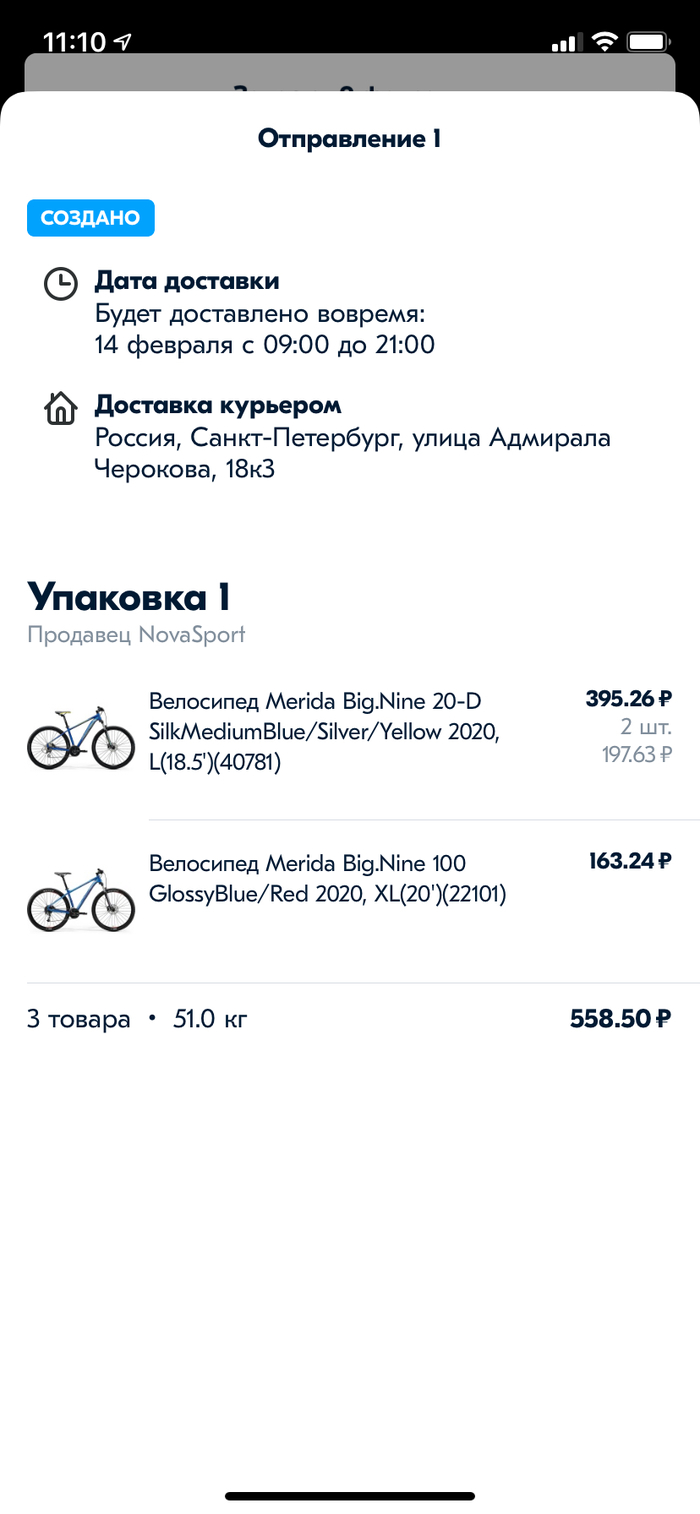 После чего было принято незамедлительное решение заказать всей семье по велосипеду, и оплатить онлайн через Apple Pay. Заказ был подтверждён и назначена доставка на 14 февраля, был выслан чек об «авансе». После чего озон в одностороннем порядке отменил покупку.
