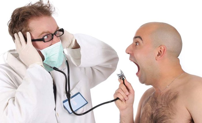 Также может пахнуть изо рта. Но это вообще-то наша профессия, и мы знали, куда шли))) Короче, если у пациента наблюдается постоянный запах изо рта, то бороться с ним не обязательно перед посещением врача. Но! Я вас умоляю: не ешьте чеснок в этот день и не курите непосредственно перед посещением!!!)) Выкуренная сигаретка «чтобы успокоиться» нормально так напрягает вашего врача, потому что запах стоит вполне себе крепкий. (особенно во время использования пистолета вода-воздух)