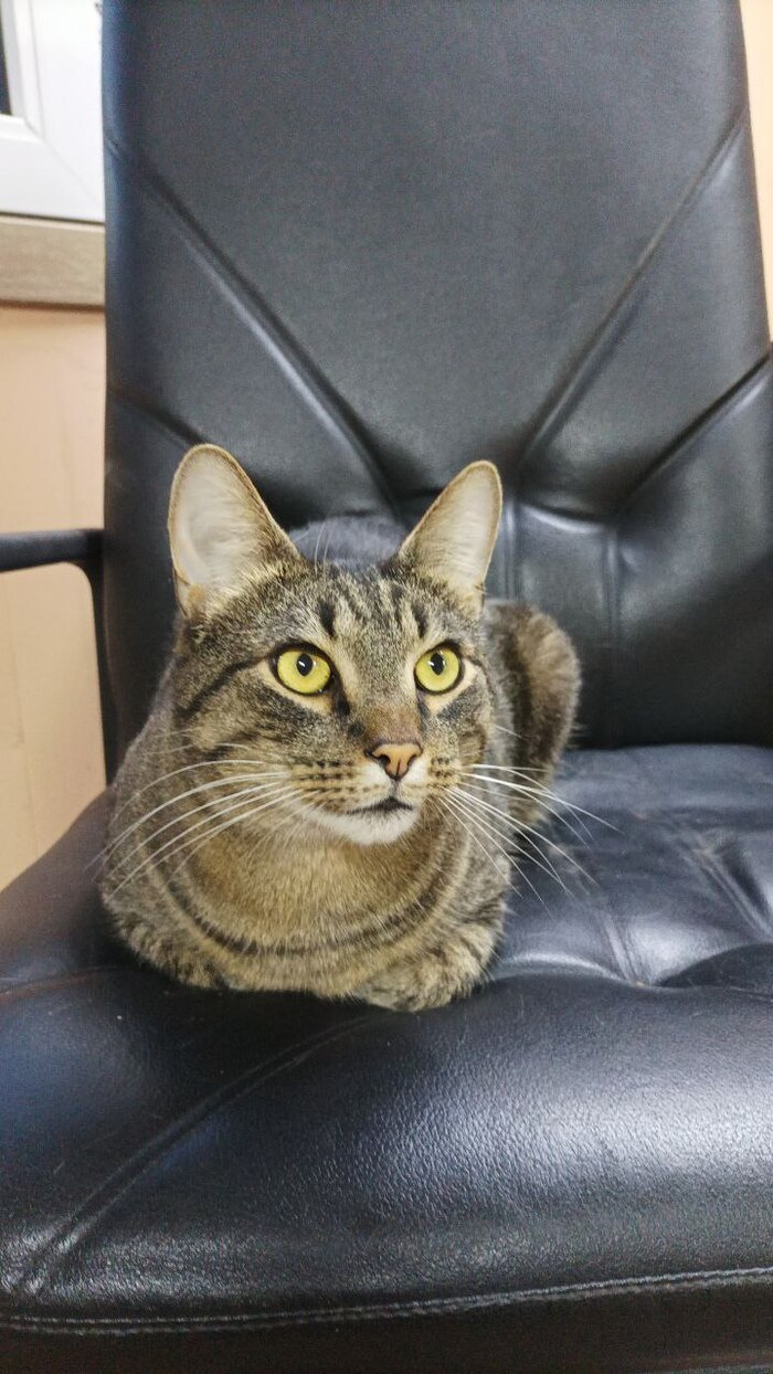 Знакомьтесь, это Матроскин! С виду вполне обычный кот: серый, полосатый, с усами и хвостом, все как полагается. А вот живет Матроскин... Как Вы думаете где? Уверена, что никогда не отгадаете! Думаете в мультфильме? А вот и нет, Матроскин живет на работе, в офисе. У него есть свой стол и стул, но У НЕГО НЕТ СВОЕГО ЧЕЛОВЕКА.