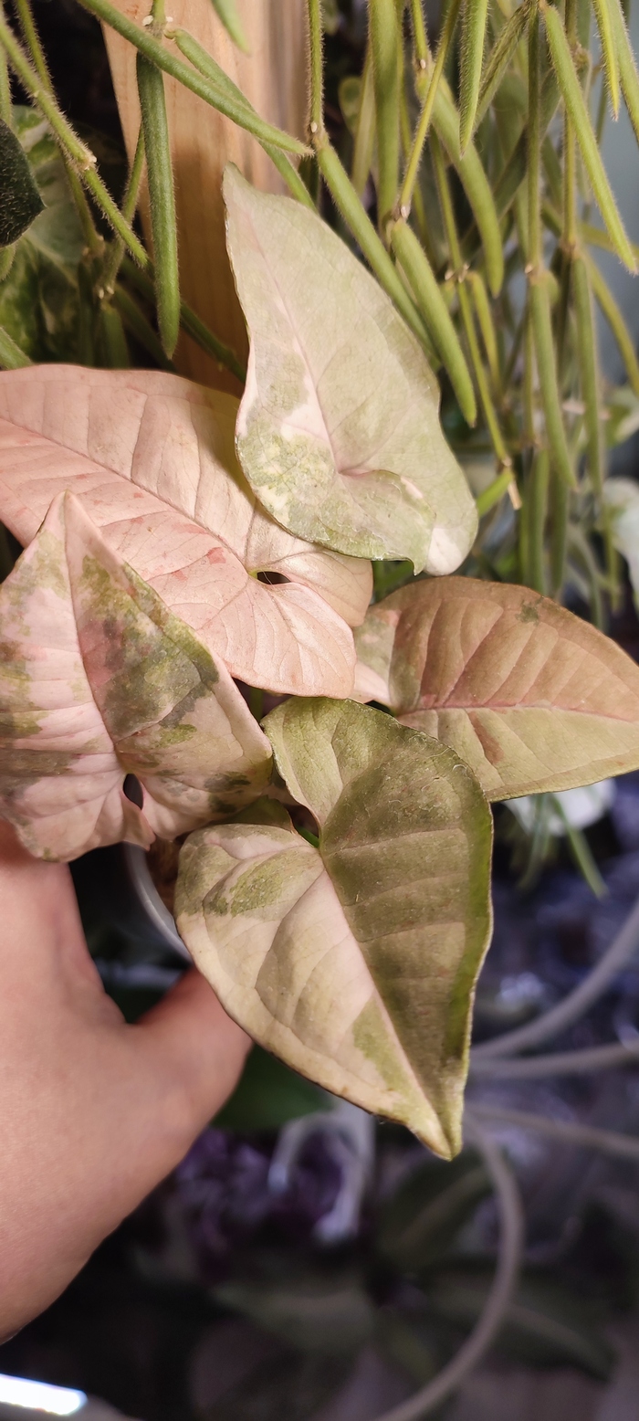 Всём привет. Хочу поделиться небольшими хитростями об уходе за сингониумами.Последнее время они стали весьма популярными любимцами наших квартир. Я их просто обожаю за простату в уходе. Но иногда некоторые сорта теряют свои признаки и уходят в зелень или теряют сортность. Не стоит этого бояться. Просто придётся набраться терпения и черенковать бедняг, пока не проснётся сортовая почка.У меня эта процедура проходила быстрее, после того как я перевела всё свои сингониумы на сфагнум. Ещё одна проблема данных растюх, что они стремительно наращивают корни только в глубину(что поделать, такое строение корневой). Чтоб кустик рос быстрее и крепче, я при пересадке заматываю длинные корни в клубочек или немного отрезаю.Не забываем, что в природе сингониумы растут лианой и быстро вытягиваются. Поэтому, когда мне нужно сформировать пышный кустик, я просто режу вытянувшийся побег на части и укореняю в одном стаканчике. По мере обрастания получается пышный кустик. Не забываем о том, что не мы подстраиваемся под "зелёных любимцев", а их нужно приучить к нашим условиям обитания.)))