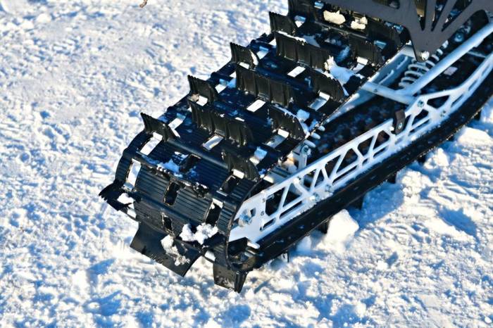 После пробной вылазки стало ясно, что сугроб глубиной до 70 сантиметров машина преодолевает легко, практически не замечая преграды. А вот на большей глубине начинает зарываться: сказываются узкие гусеницы. Сейчас северянин подумывает над покупкой модели с расширенными траками.