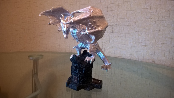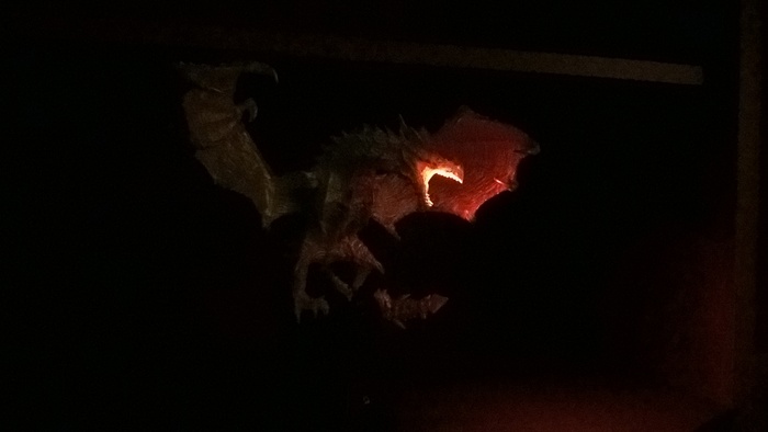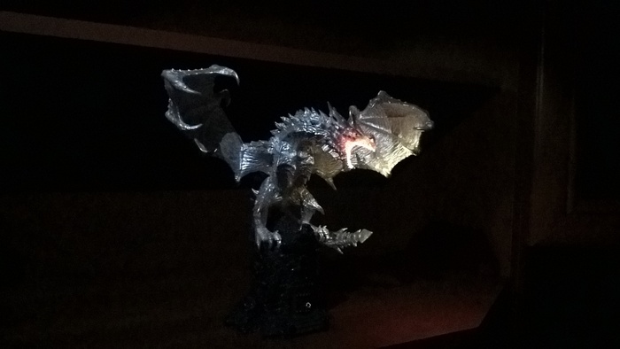 В ладонь встроен светодиод, питающийся от одной трёхвольтовой батарейки (внизу статуэтки). Включается свет нажатием рубина на поясе Ксардаса.