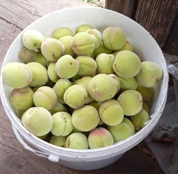 Персик сорта Хасанский - полудикая мелкоплодная форма, достаточно живучая и зимостойкая. На вкус весьма неплох, а для Челябинска - особенно. Зрелый персик имеет зелёную окраску с лёгкой желтизной, иногда с красным румянцем. Вокруг косточки - красная пигментация. Косточка прикольная, маленькая и почти круглой формы.