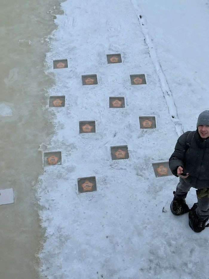 На фоне происходящего шапито на ОИ-2026 в Италии, неравнодушные люди провели акцию поддержки наших спортсменов: во льду канала Грибоедова оформили им Аллею славы.