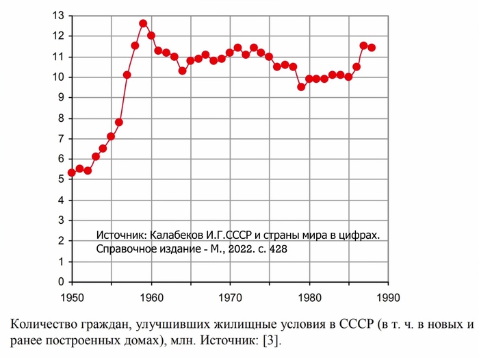 Благодаря этим мерам темпы жилищного строительства в СССР достигли небывалого для той поры масштаба. С конца 1950-х и до конца 1980-х ежегодно улучшали жилищные условия по 10 - 12 млн. человек. По первому требованию жилплощадь, конечно, не выдавали, но срок ожидания в очереди на квартиру составлял в среднем 5-7 лет. А молодые семьи могли рассчитывать на улучшение жилищных условий в ещё более короткий срок.