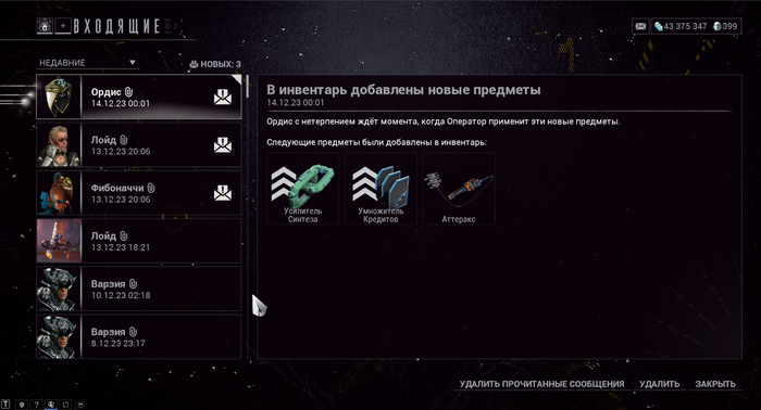 5) Проверяем получение внутреигрового письма с набором, закрываем игру, переносим файлы обратно и удаляем игру из EGS.