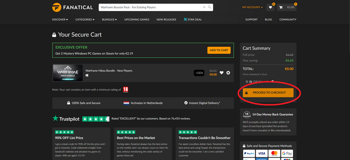 На сайте fanatical.com раздаётся 2 набора для Warframe