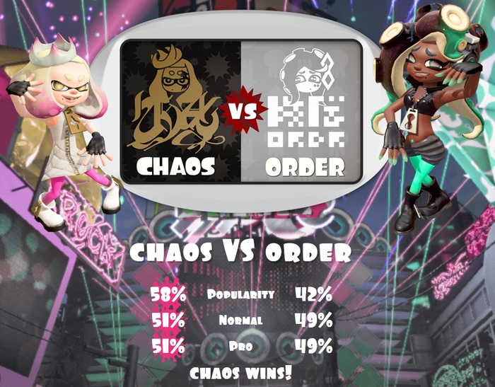 Периодически, раз в 2-3 месяца или по праздникам, в Splatoon 2 объявляется особый режим - Сплатфест. За некоторое время до его начала игрокам предлагается выбрать одну из двух сторон/команд, за которую в дальнейшем предстоит сражаться (курица vs. яйцо, сладость vs. гадость, супергриб vs. суперзвезда и т.п.).