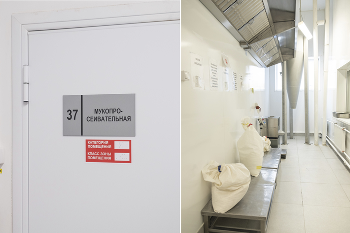 Муку для десертов и блинчиков хранят в мукопросеивательной. Оказывается, она может легко воспламениться и взорваться, поэтому перед помещением есть тамбур, который сдержит удар в случае ЧП. Воздух внутри мукопросеивательной разряженный. Это нужно для того, чтобы мука не оседала на стенках соседних помещений и они оставались чистыми.