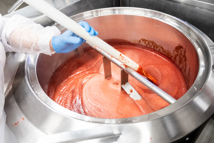 Склад находится в самом начале производства. После поступления продуктов их осматривает технолог. Он оценивает свежесть и качество продуктов, измеряет количество микроорганизмов и патогенной микрофлоры, тестирует продукт на кислотность и содержание пестицидов.