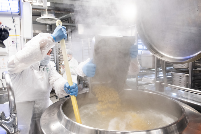 Пройдя через все цеха, мы наконец-то попадаем на кухню, где происходит магия создания рагу и стейков. Чтобы еда была действительно полезной и диетической, ее ни в коем случае не жарят. Вместо этого в ход идут пароконвектоматы.