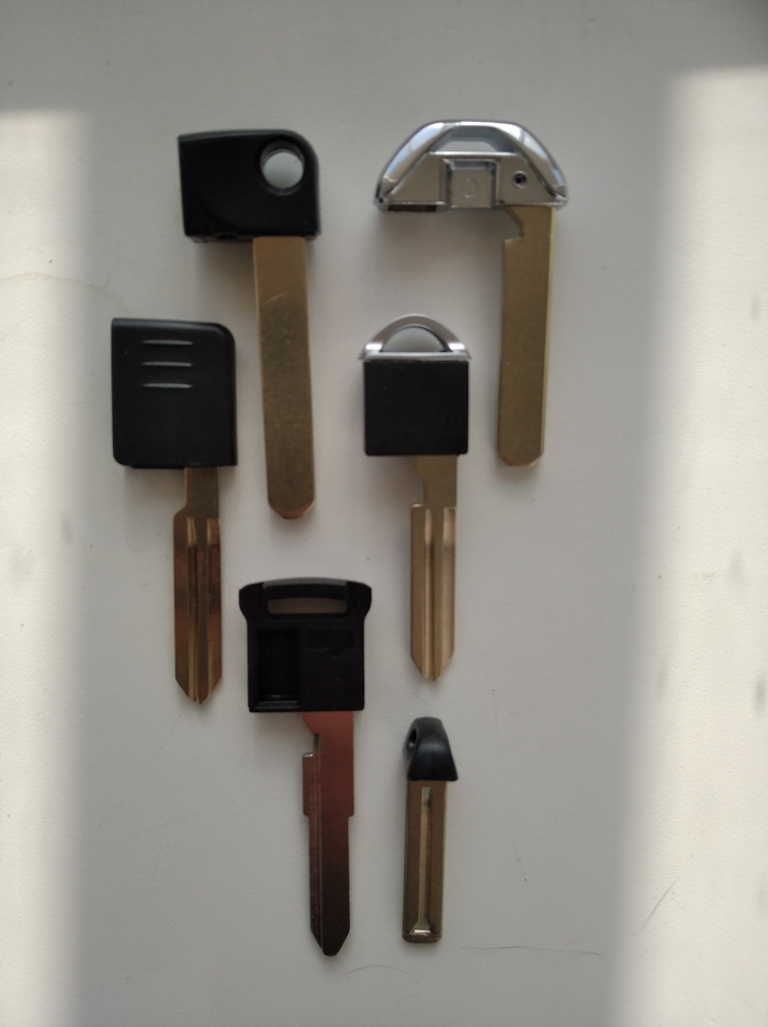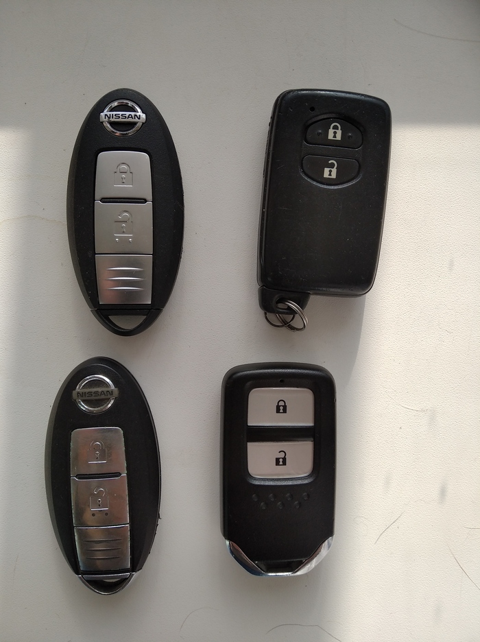 На фото смарт-ключи. Слева, два Ниссан, справа вверху - Тойота, внизу - Хонда.