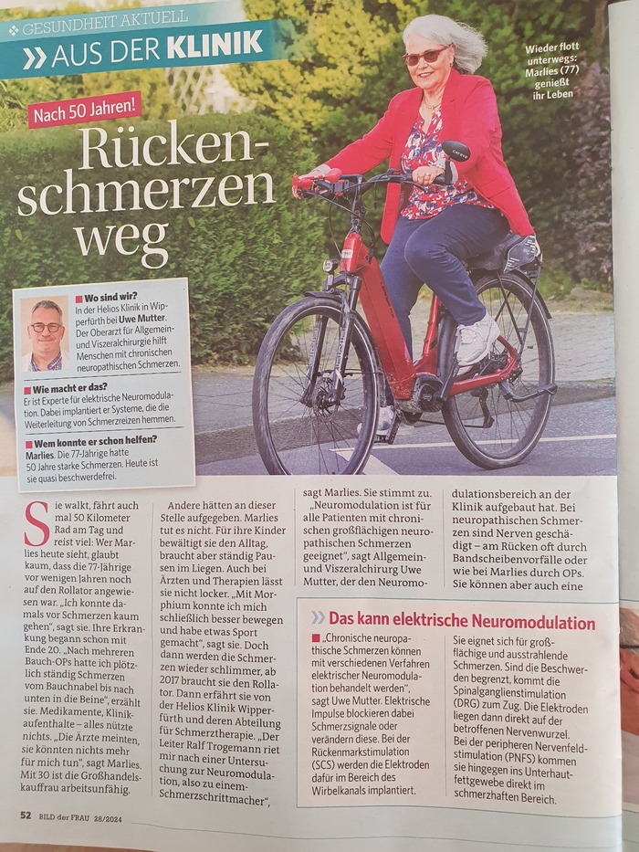 Женщина 50 лет мучается от боли в спине вследствие операции. На одной из терапий ей предложили вживить нейромодулятор. И с тех пор она счастлива и забыла о боли