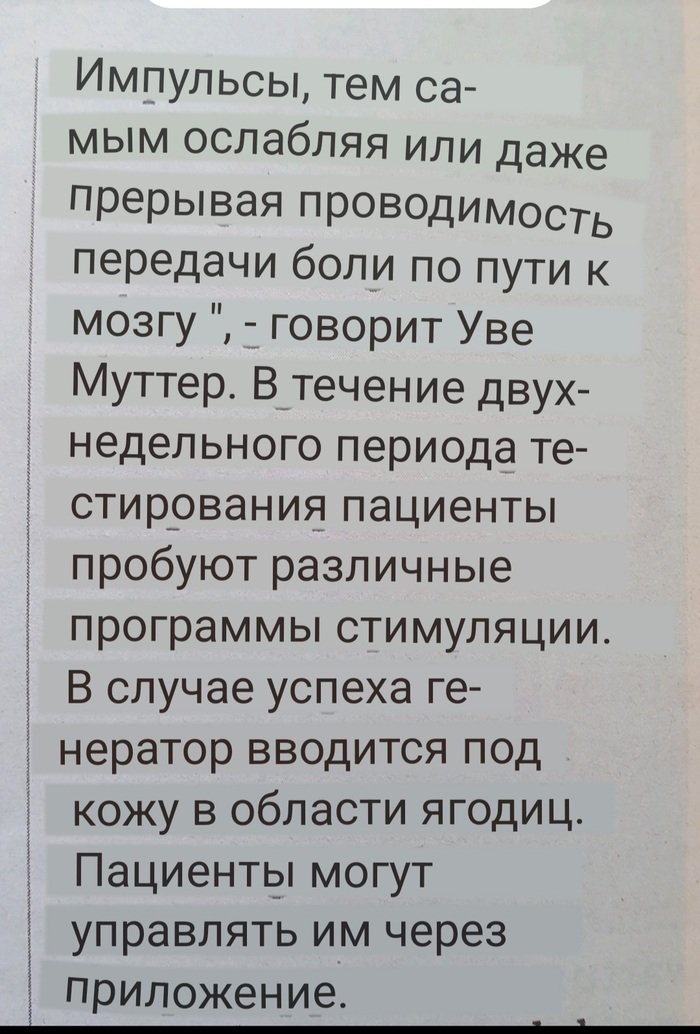 В Германии только 100 пациентам вживили эту штуку, думаю мечтать об этом не стоит, пока это всё выйдет массово на рынок.. А жаль. Эх, родись я попозже, может и застала бы время, когда боль будет пережитком прошлого ( хочется верить)