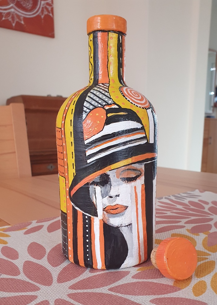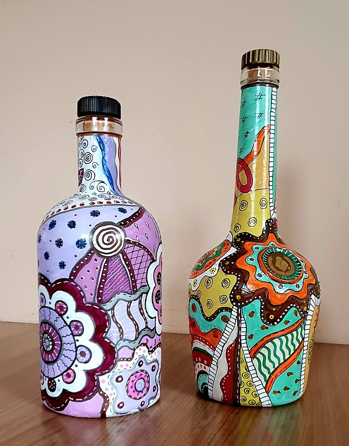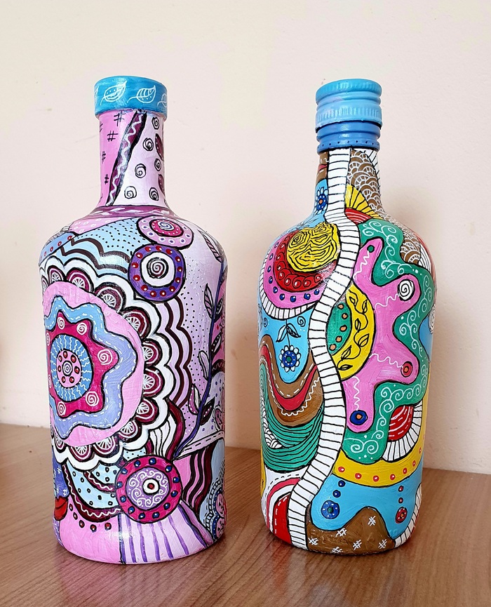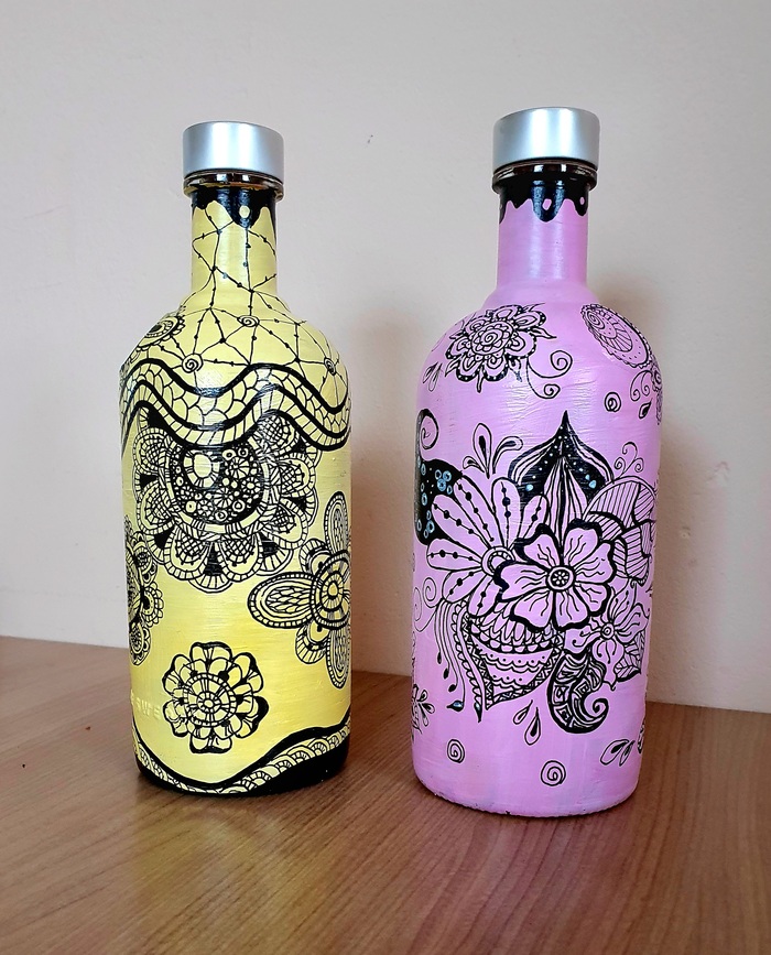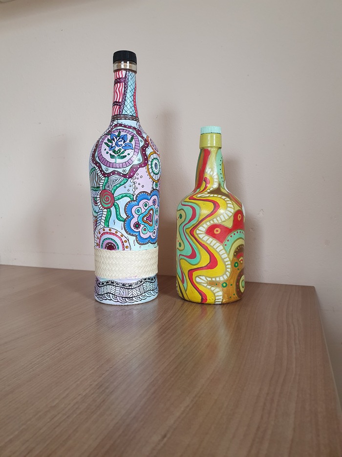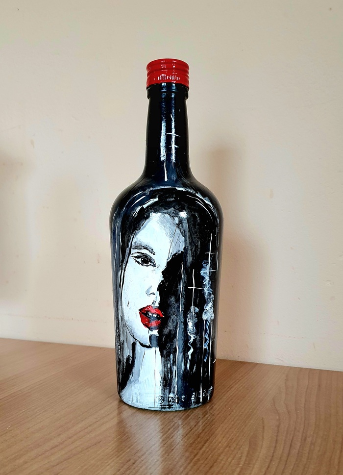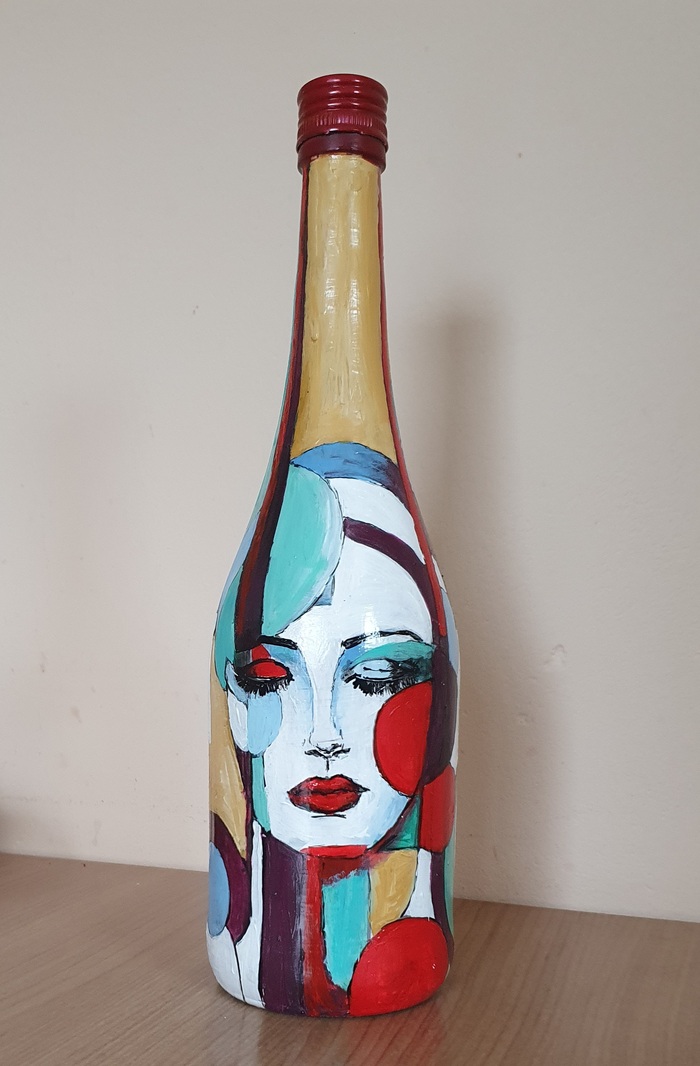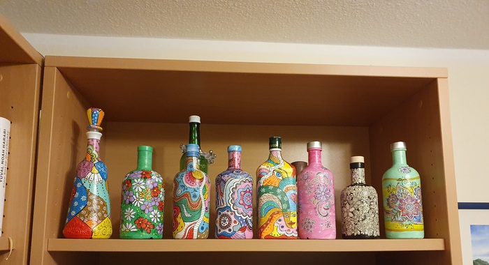 Показала малую часть моих бутылок, много продано. Рисую акрилом, покрываю лаком .