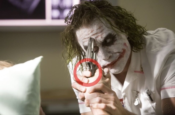 Когда Джокер «Темный рыцарь (2008)» дает Харви Денту возможность убить его, он держит указательный палец на курке, что позволило бы ему предотвратить выстрел, даже если бы Дент нажал на спусковой крючок.