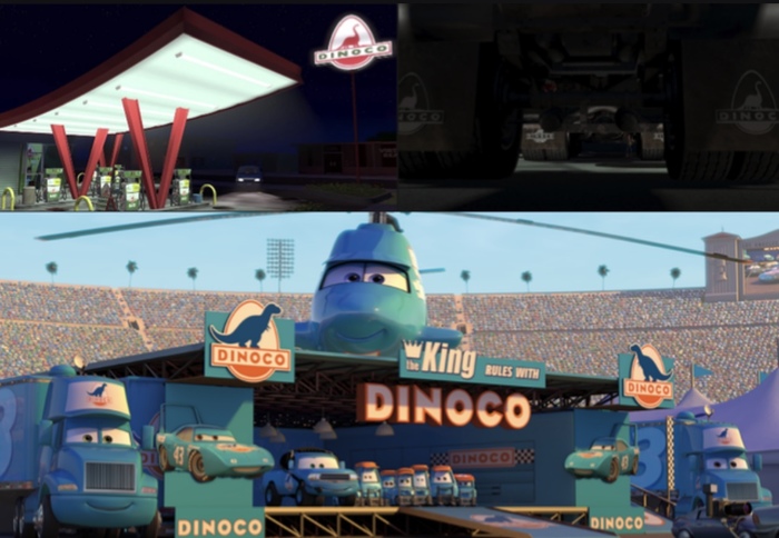 В «Тачки(2007)» есть реклама остановки для грузовиков, и они предлагают «Официанток-кабриолеты» То есть топлесс :)