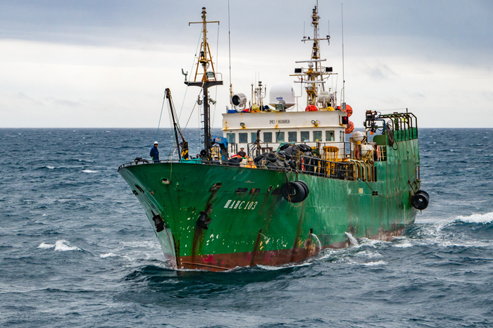 Тухлым минтаем. Потом выборка , обработка прямо на палубе и так по кругу , когда все