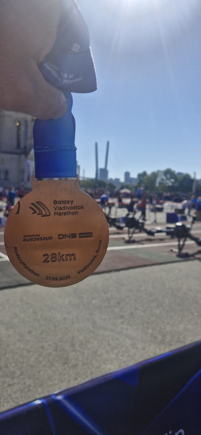 По итогу после финиша, даже ходил с трудом. А друзья еще угорали, не заблудился ли я по пути, они то марафон бежали, а кто-то даже шустрее чем я свои 28. До номера с холодным пивом топал минут 25, хотя всего 1.5 км было. Забег был самой сложной часть нашего выезда, дальше пошли гулять по Владивостоку, но это другая история.
