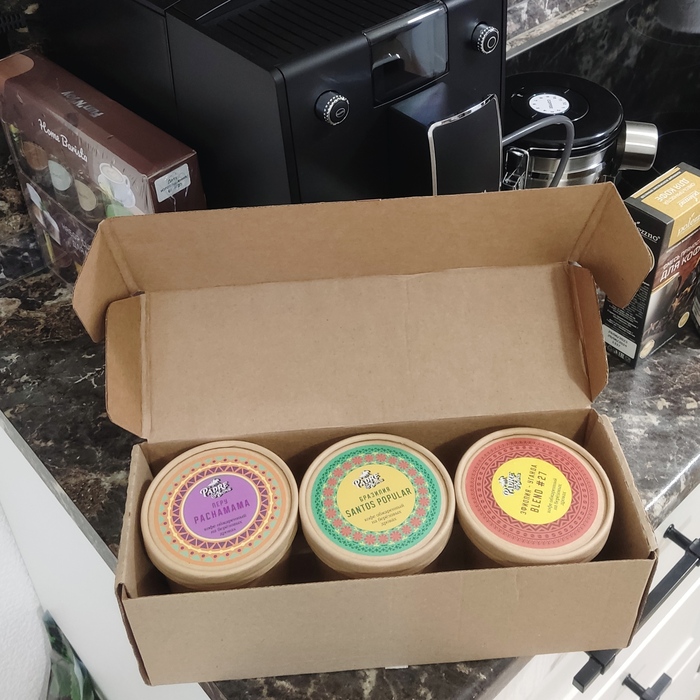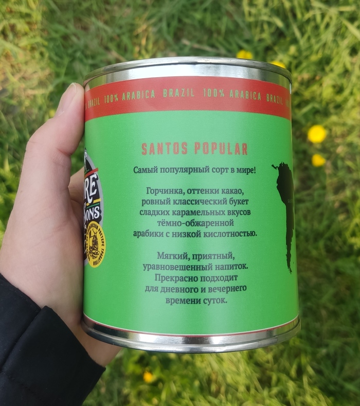 По кофе это один из распространенных сортов из Бразилии. Вариантов на рынке с этим кофе множество. В данном случае на банке написано Padre&Sons Santos Popular.