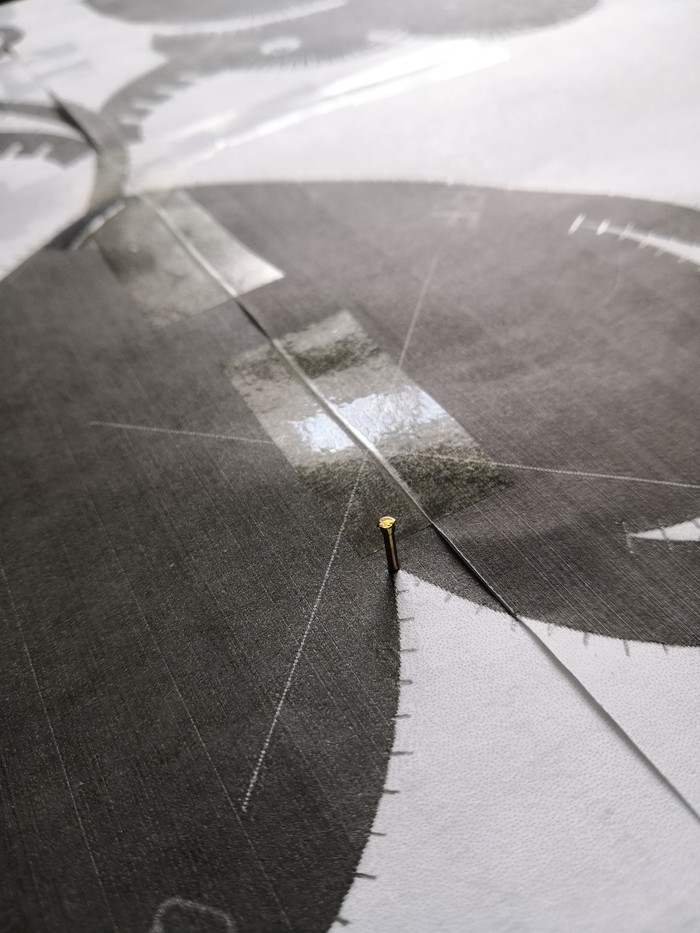 Затем я планировал тупо скачать картинку из интернета, распечатать и приступить к работе, но не тут-то было… все картинки не подходили – не того размера были линии (все уж очень тонкие для данного «проекта»). Ну что же, линейка, карандаш и погнали. Пришлось немало повозиться, т.к. всё делалось сугубо на глаз и представляя как оно будет выглядеть на доске (как видно, немало переделок на начальной стадии).