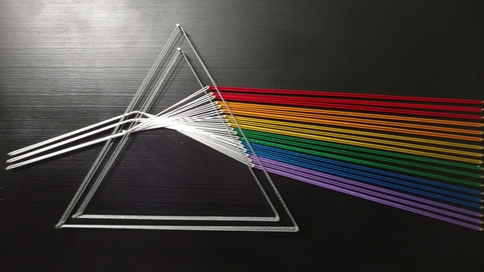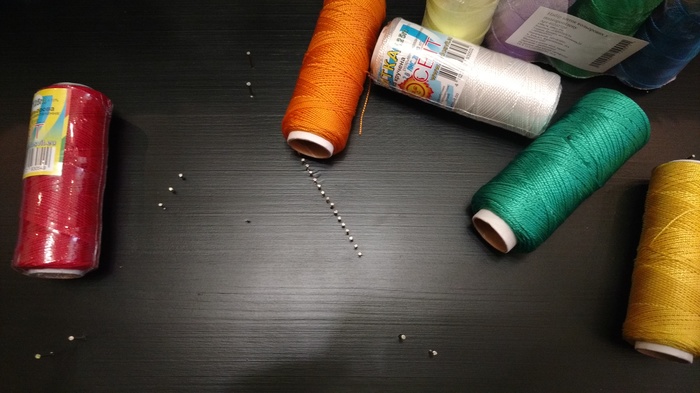 Купили в строительном магазине все материалы - древесина, наждачная бумага, грунт, матовый чёрный цвет (из баллончиков), гвозди, и капроновые нитки разных цветов.