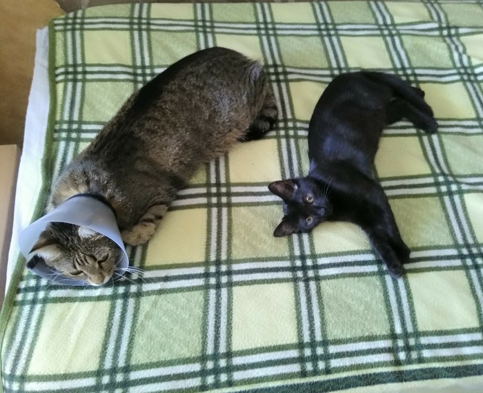 В целом, кошки чувствуют себя хорошо, но по поведению мелкой видно, что кормили ее плохо. Мы знатно офигели, когда она набросилась на кусок хлеба, хотя до этого хорошо поела.