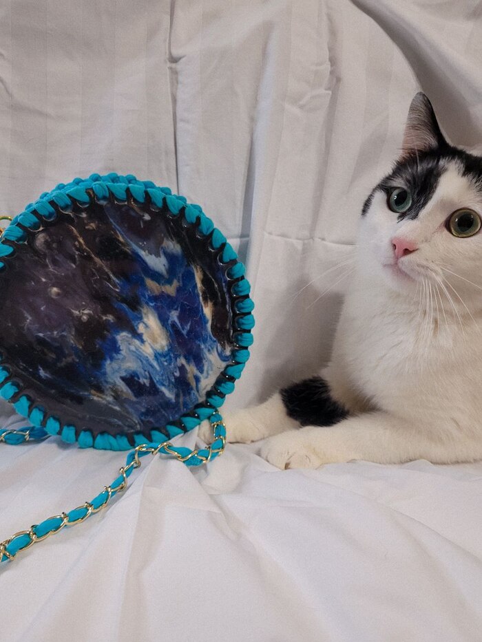 Сумка из трикотажной пряжи с эпоксидной смолой