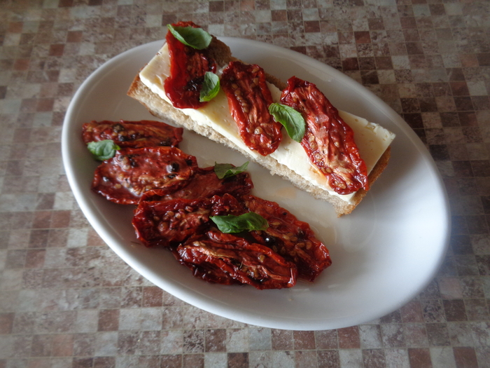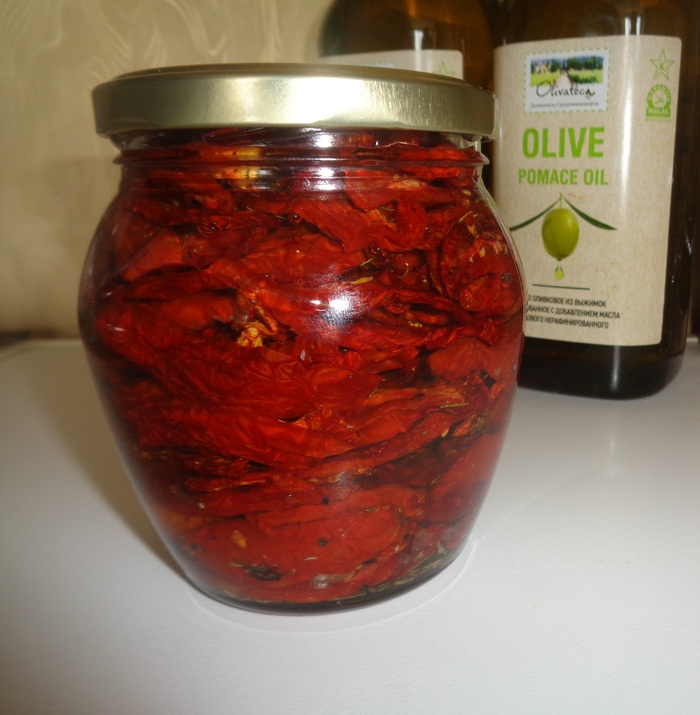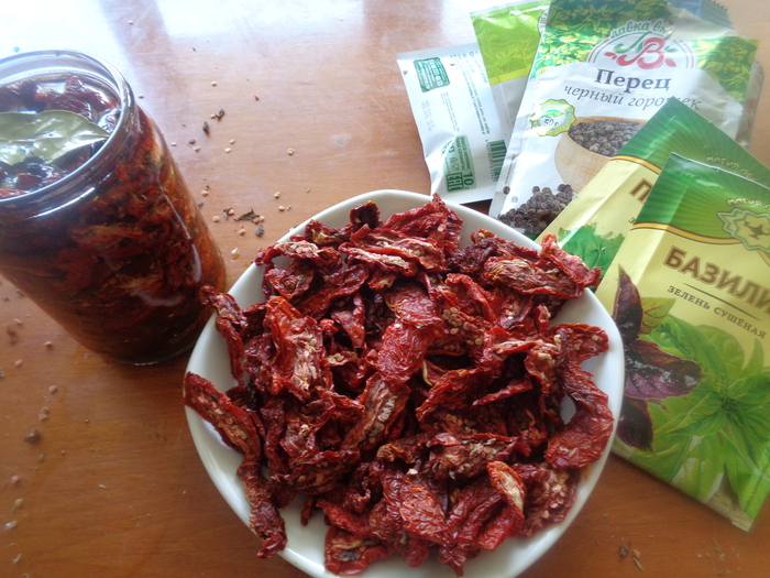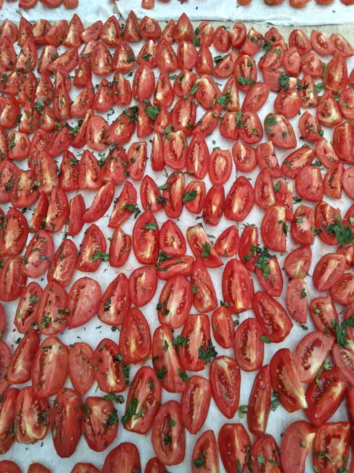 Дело было прошлым летом, из-за космических цен в магазинах на вяленые помидоры подумала-решила "А что там такого сложного? Да еще как в Италии их завалять? На солнце, по настоящему! А не в духовках и сушилках!" Сказано - сделано! Купила ящик (40 кг) помидоров сорта так называемые "Сливки" и на выходе очередь из жаждущих полакомиться моими помидорами составила 40 км)) Результат превзошел все ожидания) Жду лета и жары, чтобы уже в промышленных масштабах завалять (чтобы хватило на всех жаждущих их)