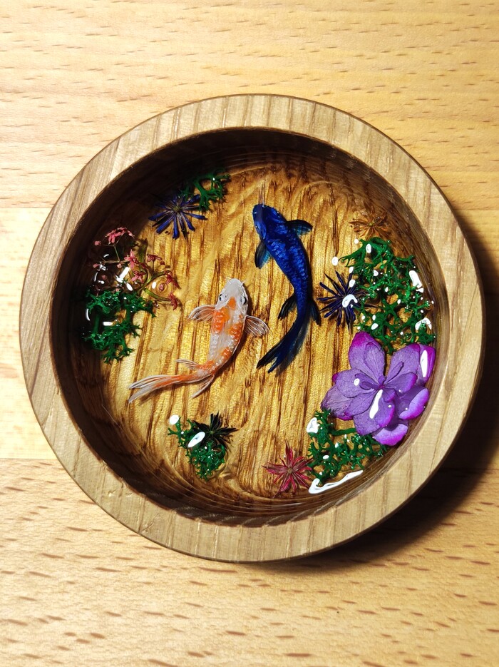Рыбов рисую послойно акриловыми красками. Этапы рисования этих рыбок не стала прикреплять, так как показывала это в другом посте с другим изделием, но принципиально ничего не изменилось.