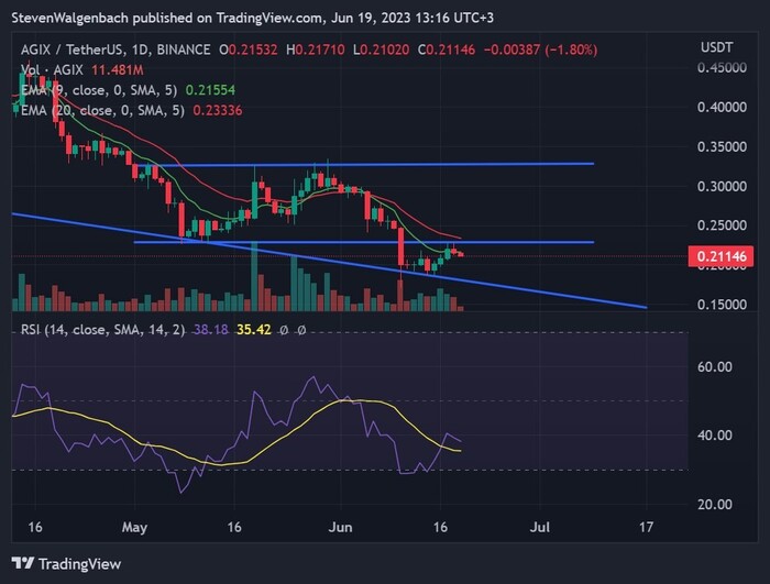 Цена AGIX пыталась трансформировать уровень сопротивления на $ 0,23481 в поддержку. Если это препятствие будет сметено в течение следующих 2 дней, перед токеном откроется путь к росту до $0,32788 на следующей неделе. Неспособность подняться выше этого уровня в течение следующих 48 часов приведёт к падению цены AGIX до $ 0,17424.