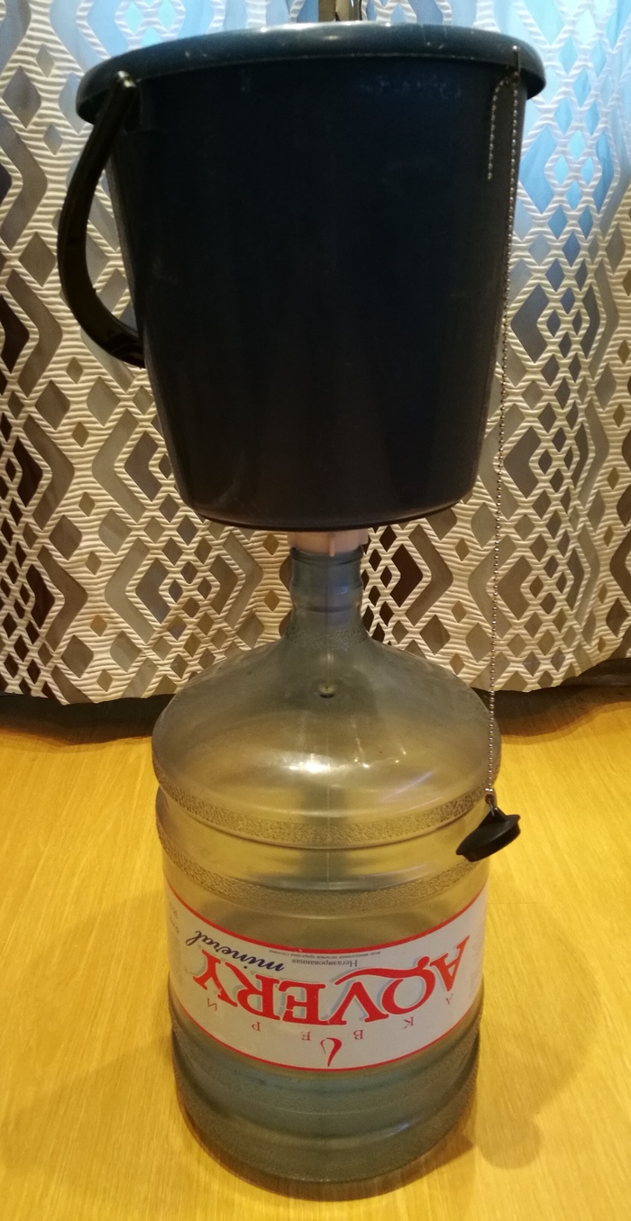 Сегодня многие из горожан набирают воду из открытых источников (родники, ключи). Среди таких источников есть как оборудованные (специально выведены трубы для забора воды), так и не оборудованные. Так вот, основная масса людей набирают воду на не оборудованных источниках в емкости с узким горлышком и имеют стандартный набор – емкость, ведро и наконец воронка (тут уж кто, на что горазд - воронка обыкновенна, воронка магнитная, воронка – обрезанная бутылка с меньшим диаметром горлышка и т.д.). Есть те, кто льет воду из ведра в емкость без воронки, при этом один край ведра может быть сделан в виде носика, те кто тупо полностью погружает всю свою емкость в источник и держат там пока она не наполнится, ну и конечно те (их не много) кто пользуются электрическими помпами (насосами) для набора воды. Предлагаю свой вариант это тандем ведра и воронки.