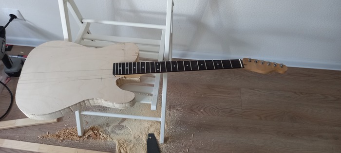 Работать с деревом очень понравилось, да так сильно, что начал рукожопить телекастер в домашних условиях, правда вырезать гитарный корпус ручным инструментом из массива дерева, оказалось не такой уж и легкой задачей