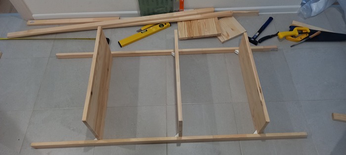 Поиск в интернете ничем не помог, так как либо дизайн готовых стеллажей был ужасен, либо были неподходящие размеры, либо цена была высокой, к примеру стеллаж ниже стоил 16к: